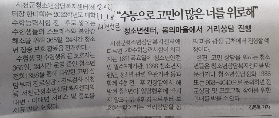 [서천신문] 수능으로 고민이 많은 너를 위로해