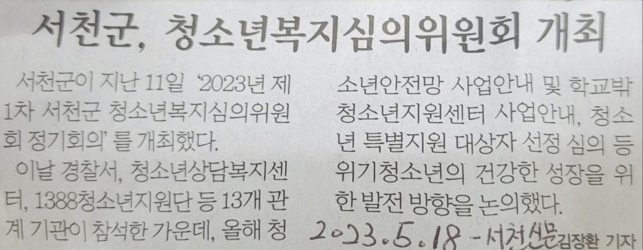 서천군, 2023년 제1차 청소년복지심의위원회 개최