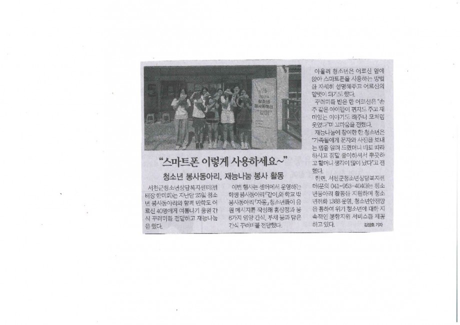 [서천신문]청소년봉사동아리, 재능 나눔 봉사활동
