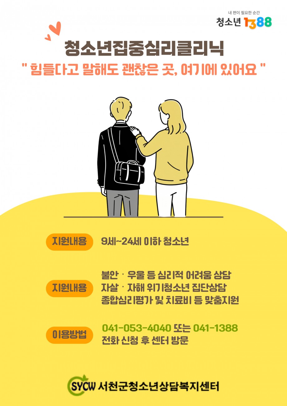 서천군내 청소년의 마음 건강을 지키고 도움받을 있도록많은 관심 부탁드립니다