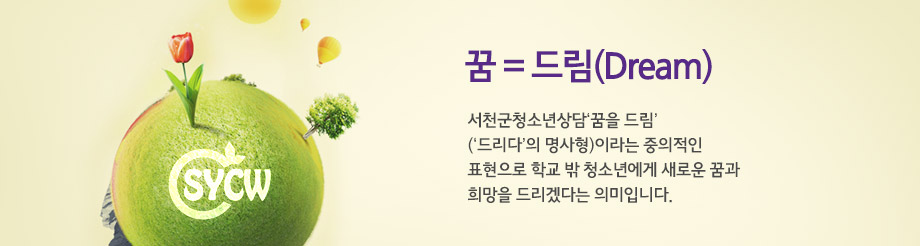 서천군청소년지원센터『꿈드림』은 학교 밖 청소년 및 잠재적 학교 밖 청소년의 개인적 특성과 수요를 고려한 상담지원, 교육지원, 직업체험 및 취업지원, 자립지원 등 학교 밖 청소년이 건강한 사회구성원으로 성장할 수 있도록 지원
